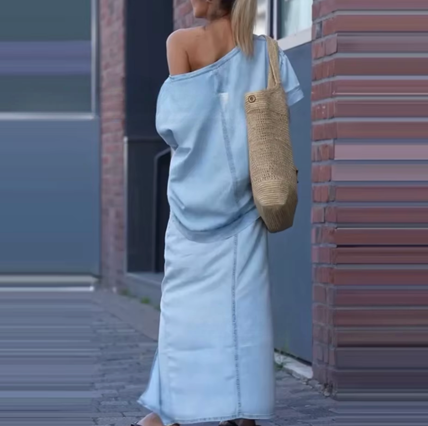 Feito com tecido leve e toque macio, esse conjunto traz uma blusa delicada e uma saia fluida, criando um caimento que valoriza o corpo sem marcar — ideal para aproveitar o verão com estilo e conforto.